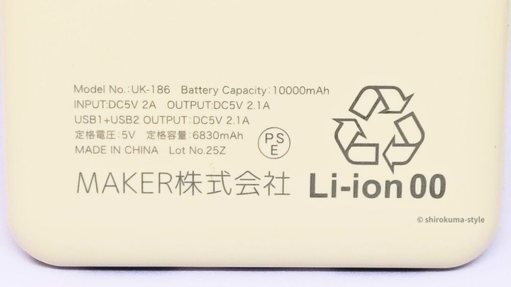 計算式 mAh ÷ 1000 × 3.7V = Wh - モバイルバッテリーの本体に「容量」を示す印字があるか確認